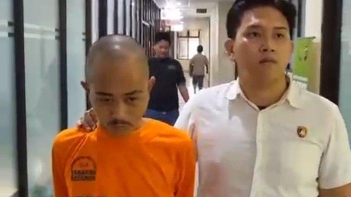 Wajah pelaku tampak lelah usai diamankan di kantor polisi.