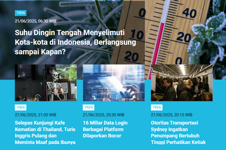 Berikut ini adalah rangkuman daftar lebih lengkapnya: Tren Populer edisi Sabtu (21/6/2025) hingga Minggu (22/6/2025) pagi yang dapat Anda simak: