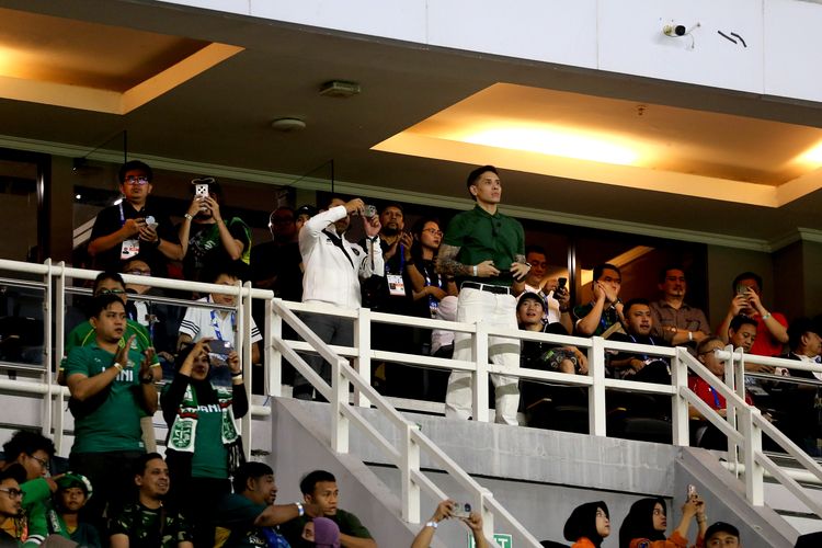 Di antara ribuan suporter yang bernyanyi lantang, hadir aktor sekaligus presenter Ganindra Bimo.